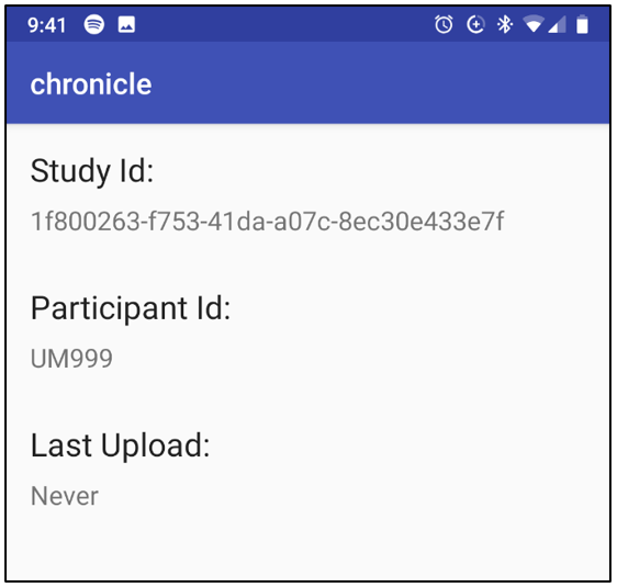 STEP 10: You will then see a white screen that shows your Study ID, Participant ID, and Last Upload.