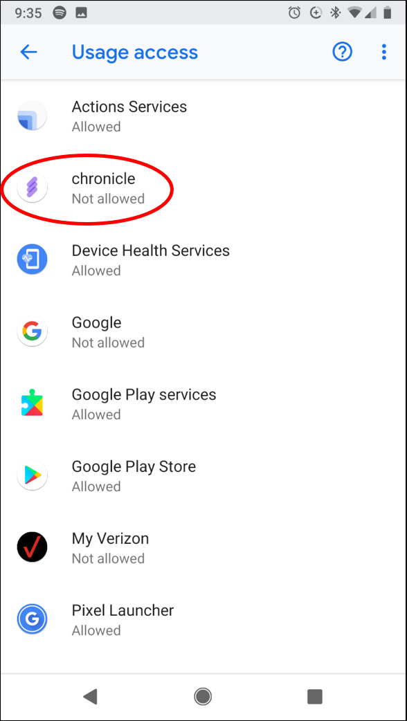 STEP 5: Tap “Chronicle” under “Usage Access”.