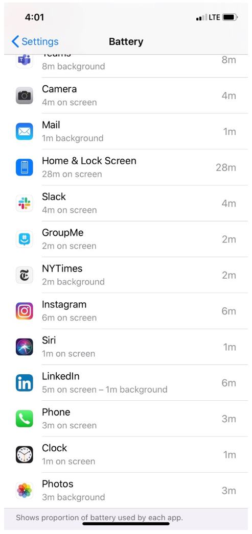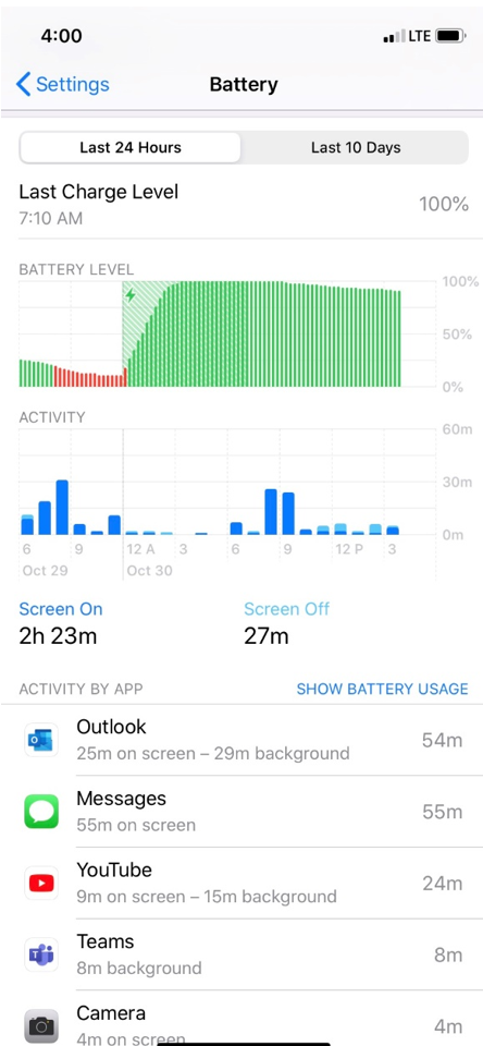 On each of the 8 nights of daily data collection, we ask that you take a screenshot of your BATTERY usage screen from your phone’s Settings. You will then upload these screenshots via our secure online portal.