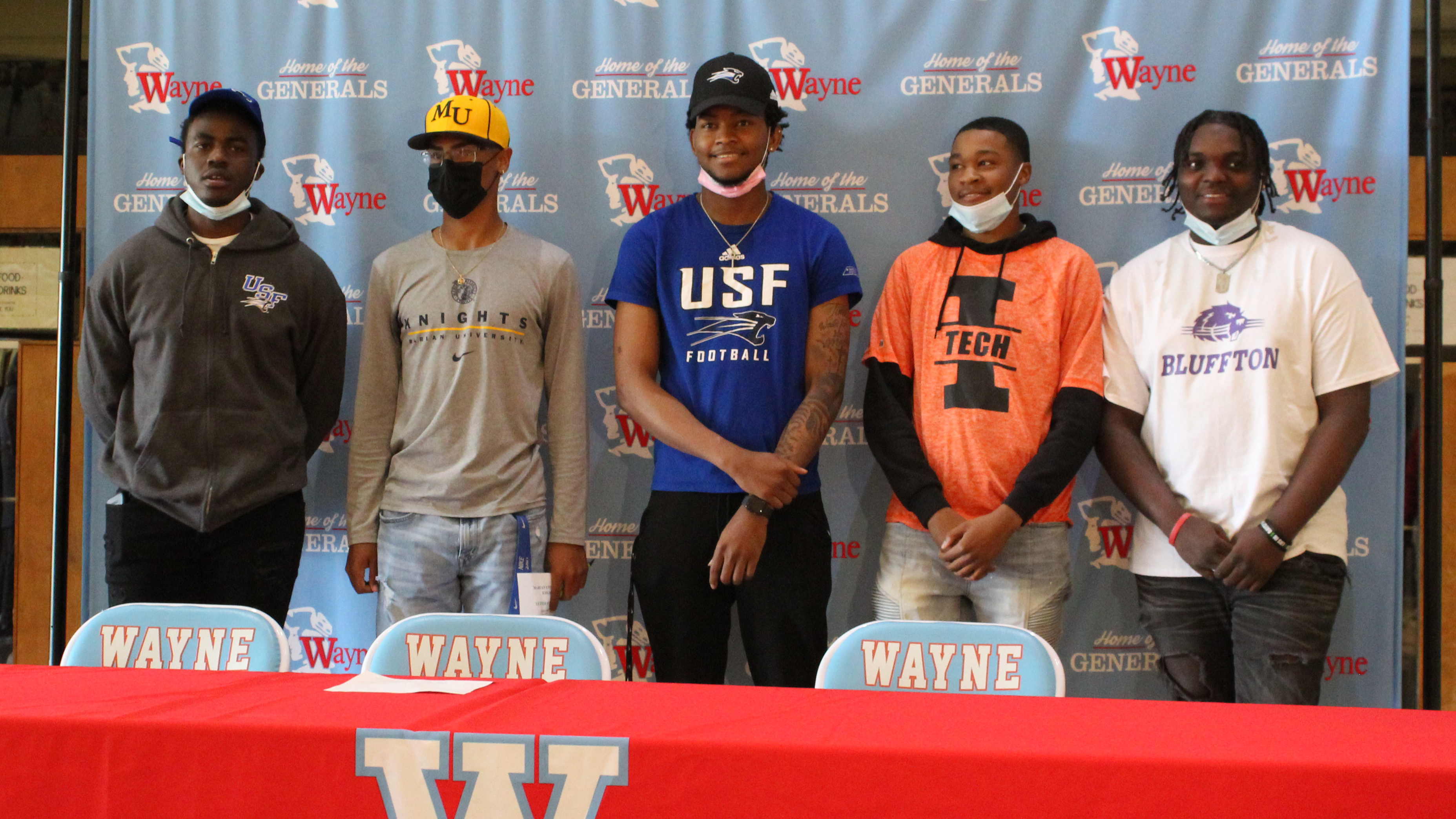 Five Wayne High School seniors made their college choices official on May 5. The student-athletes held a signing ceremony at the school to celebrate the occasion.